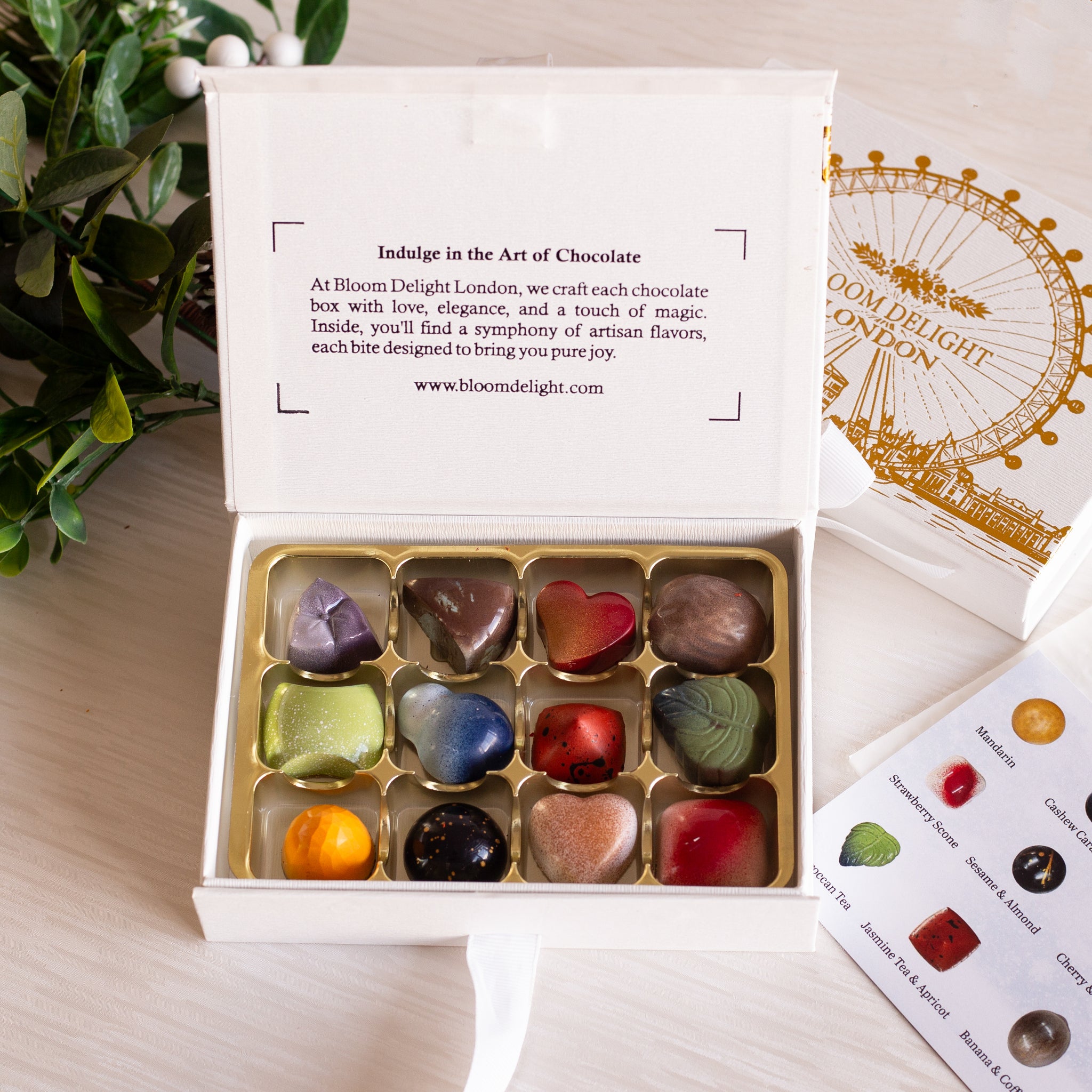 Indulge in an exquisite journey of flavour and craftsmanship with Bloom Delight London’s 36-piece handmade chocolate bonbon selection. Encased in our signature white and gold-embossed gift box, this luxurious assortment features 12 distinct creations, each crafted by hand in small...