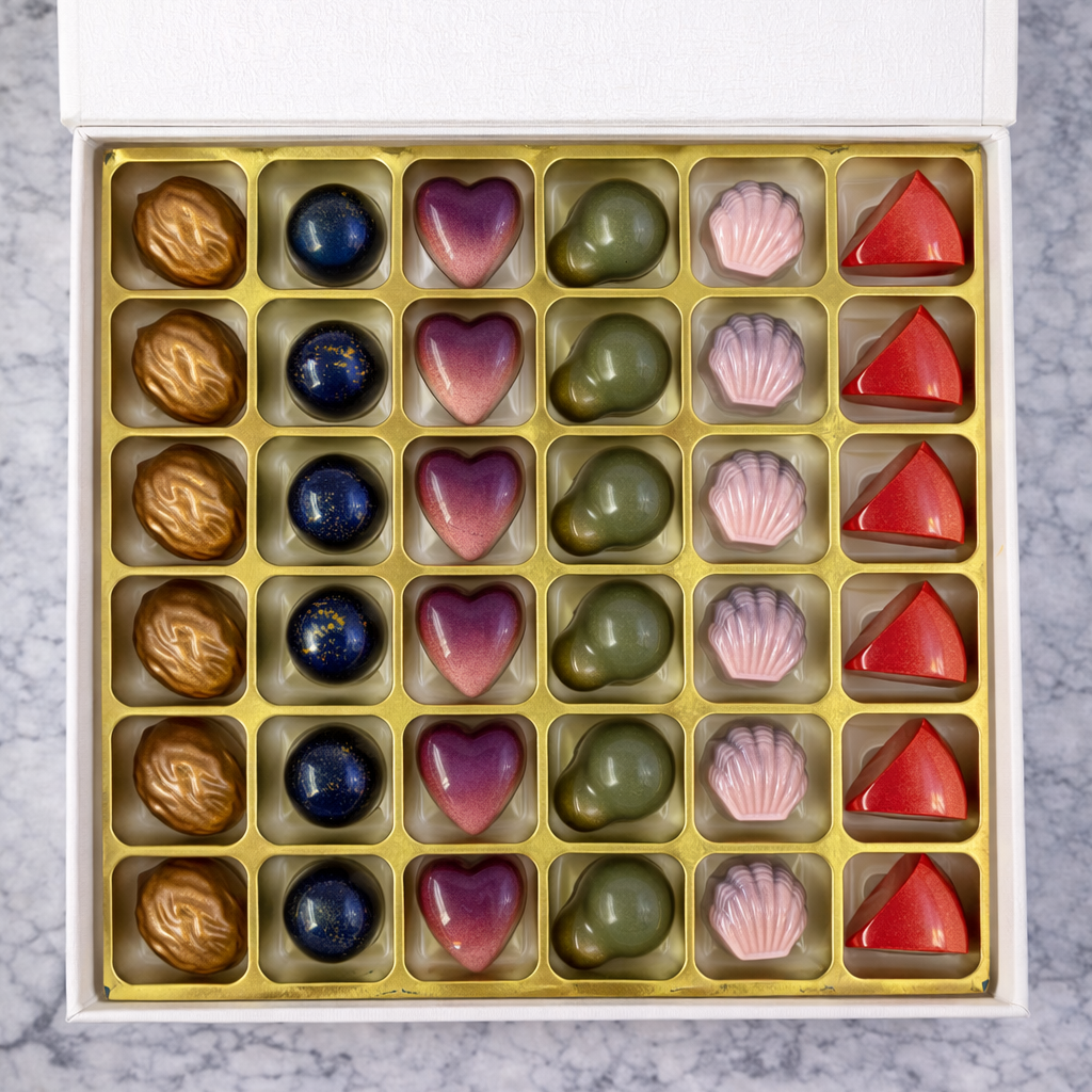 A harmonious blend of flavour, function, and craftsmanship, Superfood Symphony is a thoughtfully composed collection of vegan bonbons created for those who seek indulgence with intention.
